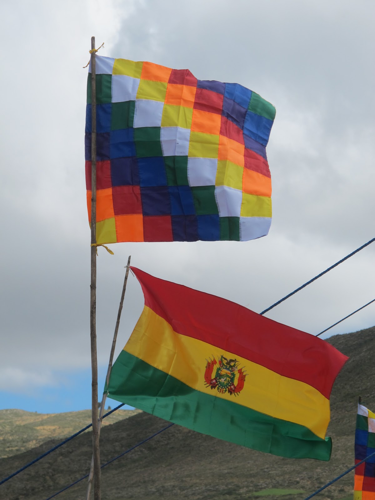 The flag of Bolivia on the bottom and the whiphala flag of the west of Bolivia |